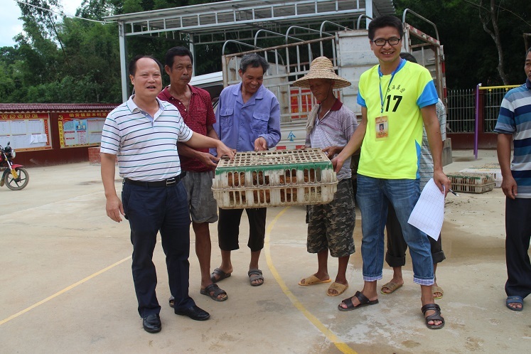 2018年7月18日,市濱海置業集團公司黨委聯合黨支部組成扶貧小組,一大早就前往靈山縣伯勞鎮新禾村,為公司精準幫扶的貧困戶免費送去375羽雞苗,幫助貧困戶解決在產業發展過程中遇到的投入成本問題,為其增收致富創造有利條件。