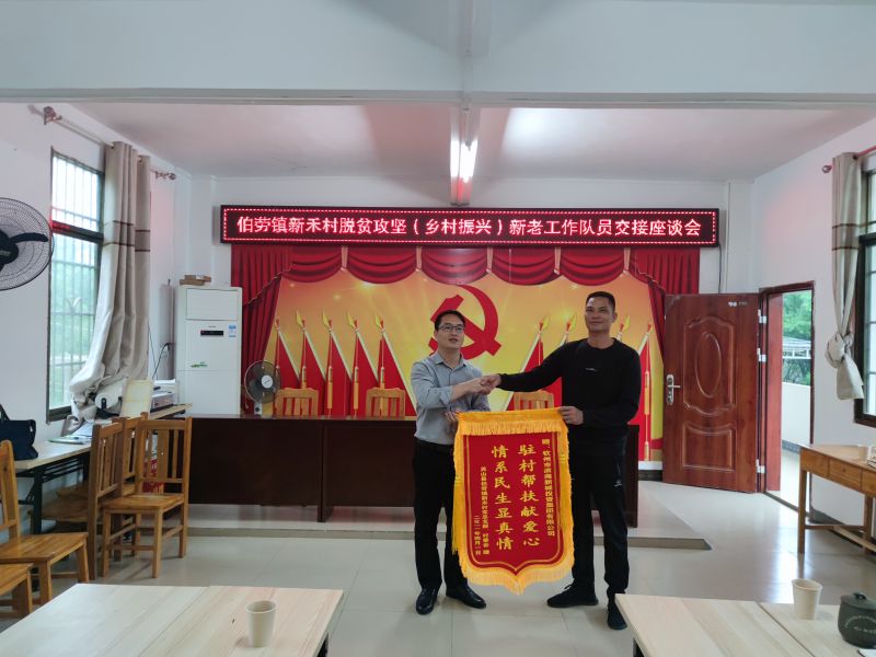 一、2021年4月25日,集團公司與市民政局、市退役軍人局、大成鎮(zhèn)黨委領(lǐng)導(dǎo)和新派駐工作隊員一同抵達浦北縣大成鎮(zhèn)聯(lián)成村,召開了浦北縣大成鎮(zhèn)聯(lián)成村鄉(xiāng)村振興座談會,座談會上對老一屆工作隊周榮正等同志的辛勤付出和成績給予了高度肯定,對新一屆工作隊梁家強等同志的到來表示歡迎。座談會結(jié)束后,進行了新舊工作隊交接儀式。