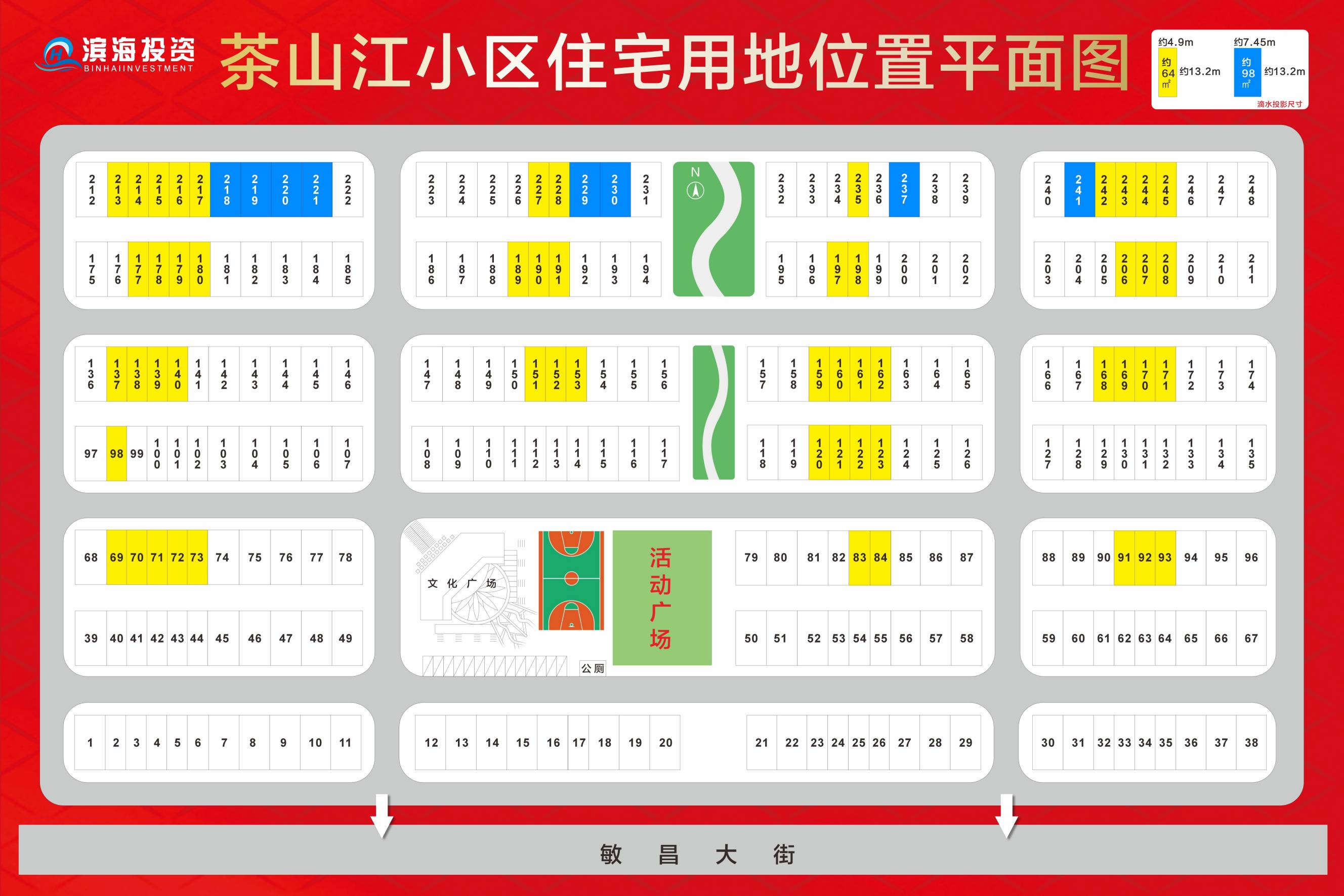 (二)本次出售住宅用地62套,其中土地使用權面積為64.68㎡的住宅用地共54套,土地使用權面積為98.34 ㎡的住宅用地共8套(詳見附件2“茶山江小區住宅用地位置平面圖”)。