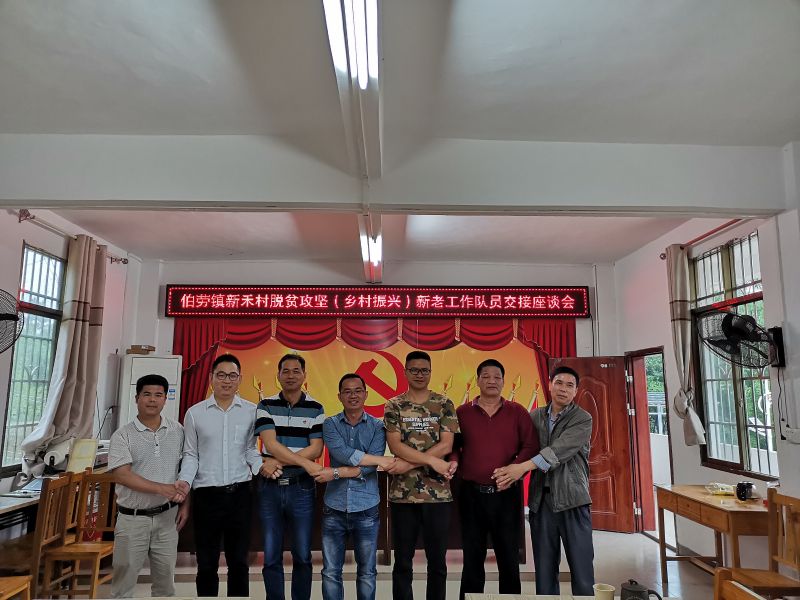二、2021年4月26日,集團(tuán)公司與市檔案館、市林科所、伯勞鎮(zhèn)黨委主要領(lǐng)導(dǎo)和新派駐工作隊(duì)員一同抵達(dá)靈山縣伯勞鎮(zhèn)新禾村,召開(kāi)了伯勞鎮(zhèn)新禾村脫貧攻堅(jiān)(鄉(xiāng)村振興)新老工作隊(duì)員交接座談會(huì)。座談會(huì)上,參會(huì)領(lǐng)導(dǎo)與新老工作隊(duì)員敞開(kāi)心扉暢談,全面了解工作隊(duì)員近期工作情況、思想動(dòng)態(tài)、遇到的困難等。參會(huì)領(lǐng)導(dǎo)對(duì)老一屆工作隊(duì)員在脫貧攻堅(jiān)期間所取得的成績(jī)給予高度評(píng)價(jià)和認(rèn)可,并對(duì)新一屆工作隊(duì)員提出具體要求和希望。要求老隊(duì)員站好最后一班崗,做好傳幫帶工作,新隊(duì)員要不畏艱苦,團(tuán)結(jié)村“兩委”,在鄉(xiāng)村振興工作中奮勇?tīng)?zhēng)先。座談會(huì)結(jié)束后,舉行了贈(zèng)送錦旗儀式。