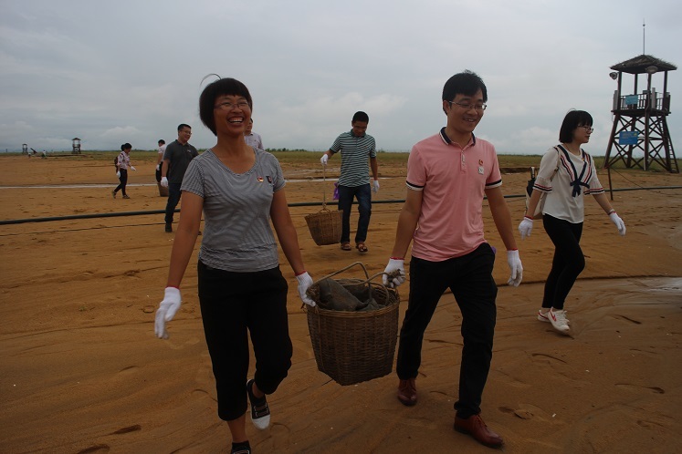 風雨停歇之時,第一、二黨支部全體黨員捋起袖子,提起垃圾筐,在黃金浴場上進行“拉網(wǎng)式”清撿垃圾活動。活動中,大家分工協(xié)作,團結(jié)互助,忙得不亦樂乎,現(xiàn)場一片熱火朝天的景象。沙灘上的垃圾大多為煙蒂、石頭、礦泉水瓶等,考慮群眾在沙灘上大都赤腳走路,為了群眾的安全,黨員們將沙灘上的貝殼也都一并清撿,清除貝類劃傷的風險。其中一位老黨員向大家說到:“大家一定不要覺得清潔活動就只是單純地撿垃圾,我們撿的可都是‘黃金’啊,別看小小一個煙蒂,我們把它撿起來了,環(huán)境就美了,群眾就會更加自覺了,那么誰也不舍得扔下手中的這枚‘黃金’了。所以,我們黨員今天的清潔行動不僅是推行群眾文明出行的理念,更是引導群眾自覺保護環(huán)境,關(guān)愛自然,從而讓清潔、環(huán)保成為每個人的責任。”老黨員看似平淡的話語,卻是對我們的諄諄教導,進一步激發(fā)了我們身為一名共產(chǎn)黨員的責任感和使命感,同時也讓我們深刻認識到生態(tài)環(huán)境建設(shè)和保護迫在眉睫。