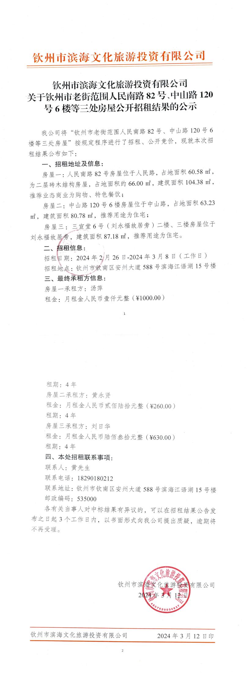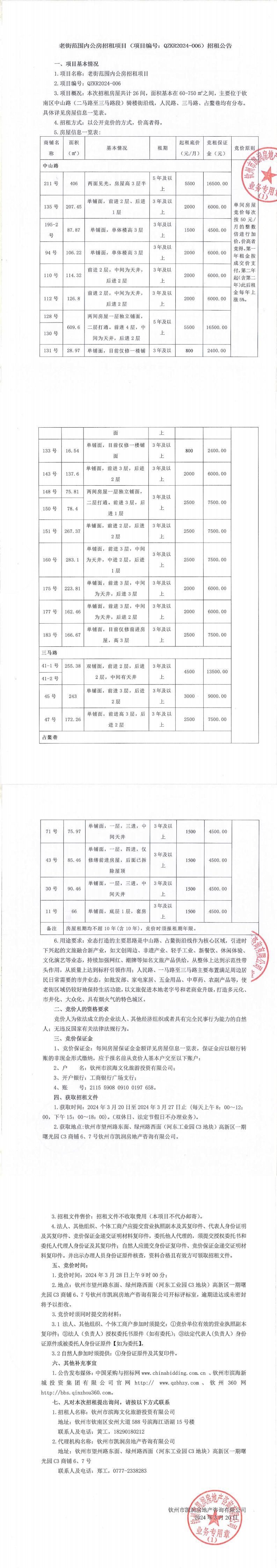 關(guān)于欽州市老街范圍人民南路82號(hào)、中山路120號(hào)6樓等三處房屋公開招租的公告