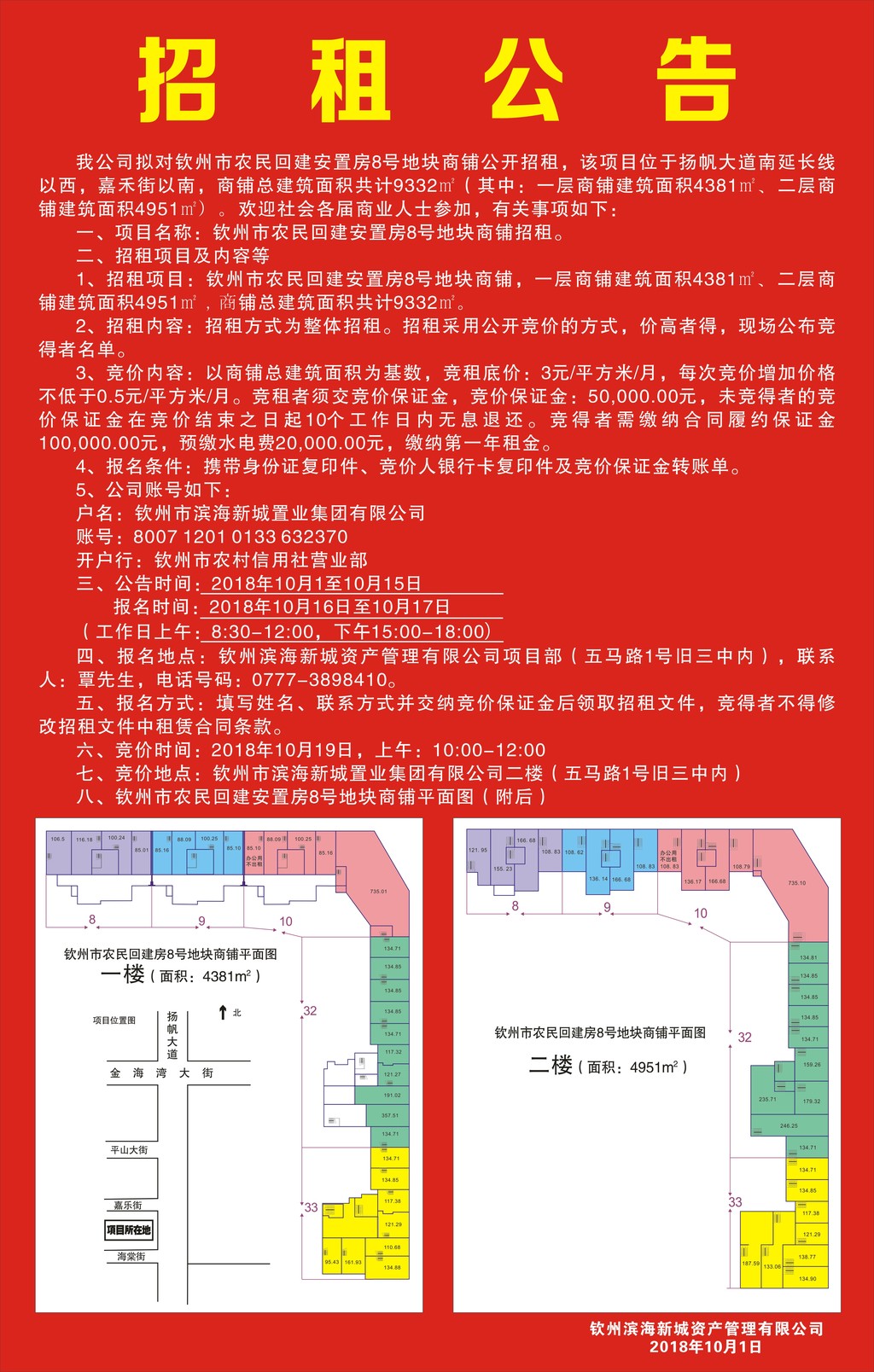 欽州市農民回建安置房8號地塊商鋪招租公告