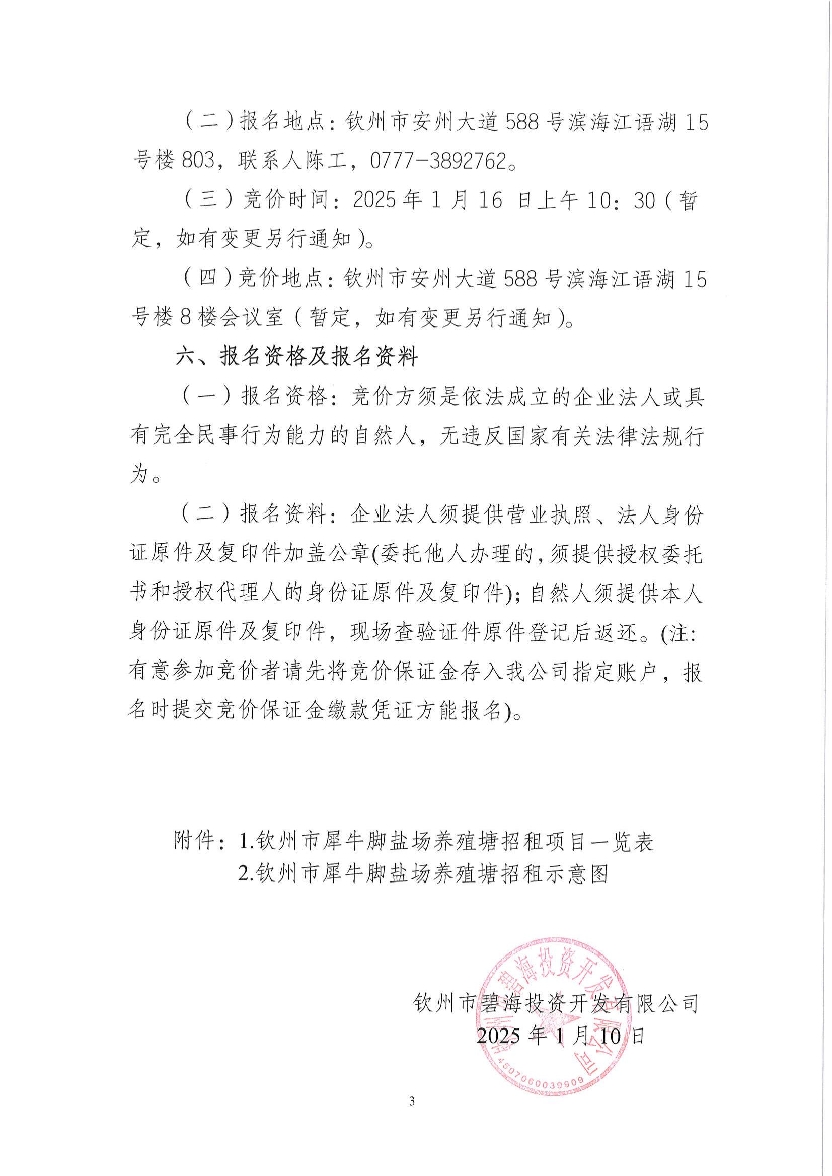 關于犀牛腳鹽場養殖塘公開招租的公告