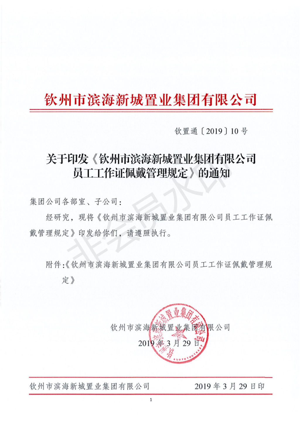 2019年4月1日,集團公司新OA系統正式開始啟用,與此同時,正式要求全體職工在上班時間佩戴個人工作證。