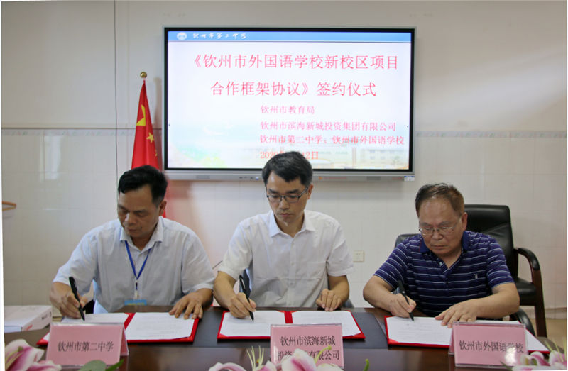 近年來,欽州市委、市政府高度重視教育事業,始終堅持教育優先發展。為打造北部灣教育強市,推動我市教育事業發展,同時拉動濱海新城開發建設,促進國有企業轉型升級。經我集團公司與市教育局、市第二中學、市外國語學校對接協商,就欽州市外國語學校新校區項目合作事宜達成了初步意向。希望利用校企合作方式,各方找準合作載體、優化合作方式,利用各自優勢和專長實現戰略共贏,能有效促進區域經濟社會發展和我市教育事業的繁榮發展,實現社會效益與經濟效益的雙豐收。