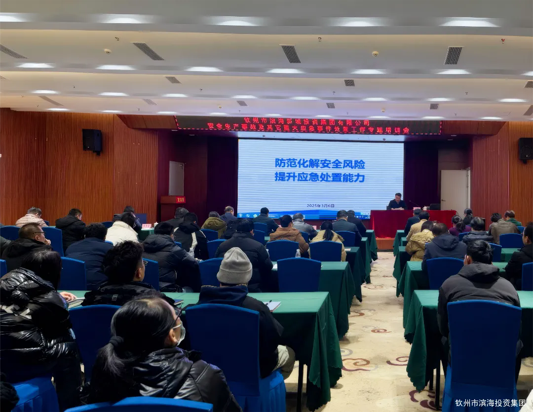 為進一步做好集團公司2025年安全生產管理工作,強化安全發展理念,提升應對突發安全生產事故和其它重大應急事件的處置能力,2025年3月6日下午,集團公司黨委副書記、總經理梁亮同志主持召開了安全生產事故及其它重大應急事件處置工作專題培訓會議。會議邀請了欽州市應急救援中心副主任丁謝紅同志對參會人員進行了《安全生產法》應知應會知識宣講、典型安全生產事故案例分析以及重大應急事件處置方法培訓。會后,參會人員紛紛表示,此次培訓會議,進一步提高了大家的安全生產紅線意識,加深了對新《安全生產法》的了解,對重大應急事件的處置工作也有了更深刻的認知,當前正值全國兩會召開期間,必須嚴格按照新《安全生產法》做好建設、經營項目的安全生產管理,以遲遲放心不下的心態切實抓好安全生產防范工作,為全國兩會營造安全穩定的環境,確保集團公司安全生產形勢穩定向好。