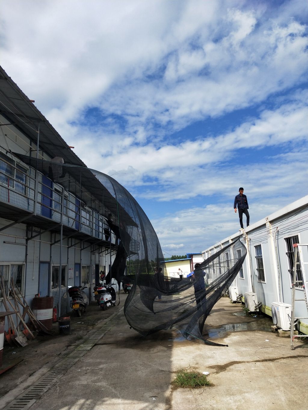 會議反復(fù)向工人強調(diào)了安全的重要性并提出了以下幾點要求,一是要求工人密切關(guān)注臺風(fēng)動向,雷雨大風(fēng)天氣可轉(zhuǎn)移至一樓會議室休息;二是要求保障用電安全,做好各配電箱的防雨措施和架空線路的防風(fēng)措施,在臺風(fēng)暴雨天氣應(yīng)停止供電,尤其要關(guān)閉監(jiān)控攝像頭及地磅傳感器,避免雷擊損壞;三是要求對空調(diào)外掛機、瀝青攪拌設(shè)備、圍墻、行道樹等易倒伏物進行加固或拆除,減少財產(chǎn)損失;四是要求加強生產(chǎn)生活設(shè)施和排水設(shè)施檢查,對工人宿舍、辦公室等臨時設(shè)施進行全面安全檢查,發(fā)現(xiàn)安全隱患,立即整改;五是要求臺風(fēng)暴雨過后要對所有用電設(shè)施和線路,生產(chǎn)和生活場地與設(shè)施的安全情況進行全面排查,消除臺風(fēng)暴雨帶來的安全隱患。