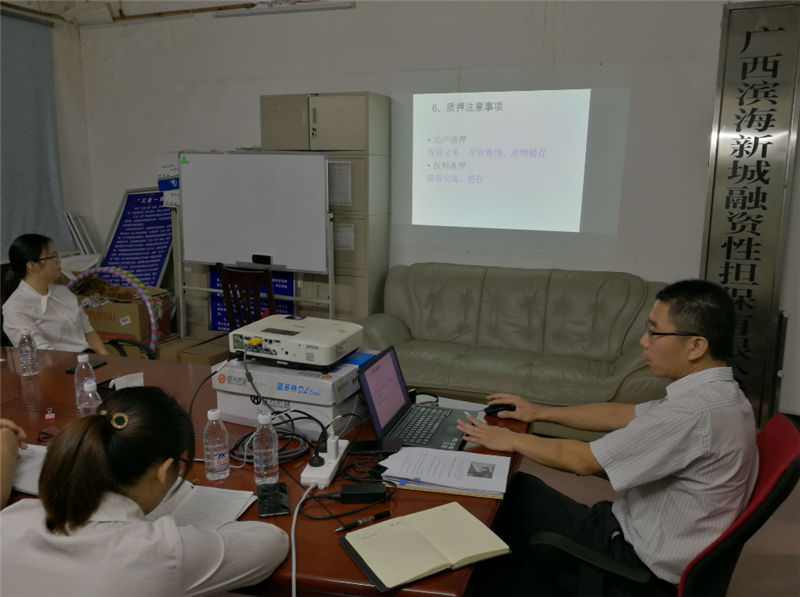 為規范公司員工的業務辦理流程,學習和鞏固擔保行業相關法律知識,2019年10月23日,廣西濱海新城融資擔保有限公司組織全體員工進行了擔保行業相關法律知識的學習。本次內部培訓會由執行董事阮經欽主持、楊運德總經理主講,重點解讀了《中華人民共和國擔保法》、《融資擔保公司監督管理條例》及四項配套制度等法律法規文件。