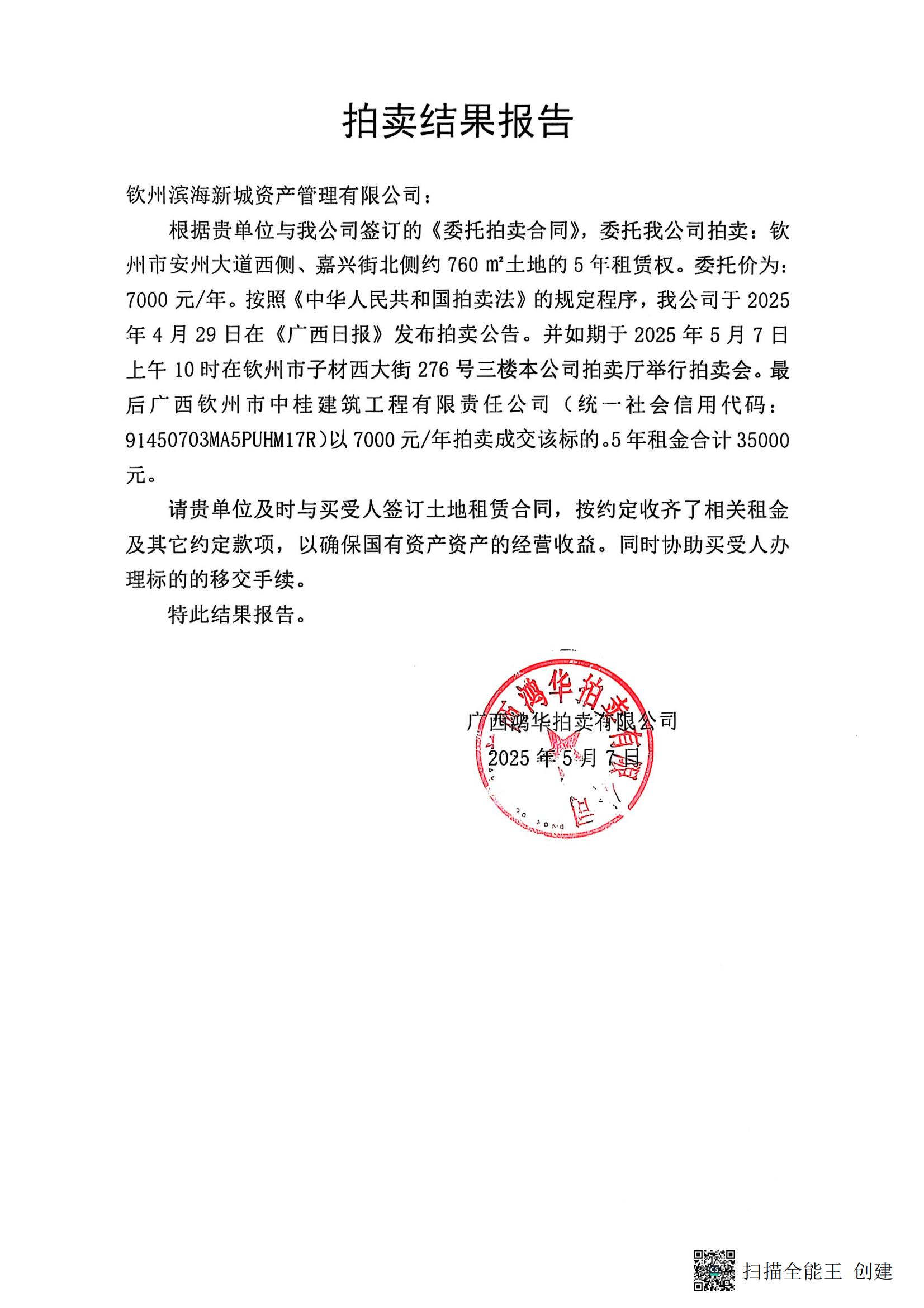 欽州市欽南區祥安路西側土地公開招租項目成交確認書