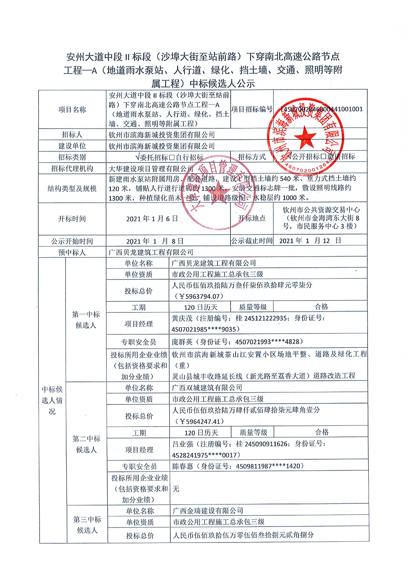 安州大道中段II標(biāo)段(沙埠大街至站前路)下穿南北高速公路節(jié)點工程—A(地道雨水泵站、人行道、綠化、擋土墻、交通、照明等附屬工程)中標(biāo)候選人公示