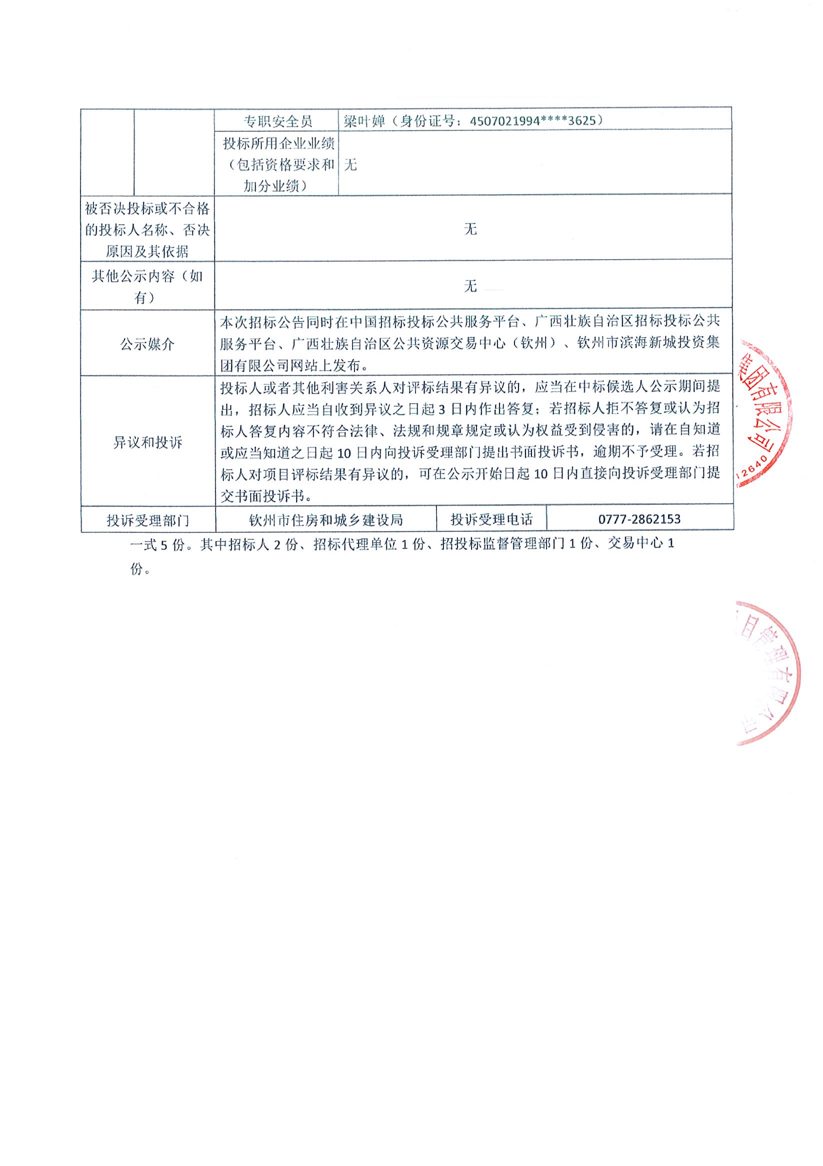 欽州市外國語學(xué)校新校區(qū)場地平整工程(標高5.00-7.00)中標候選人公示
