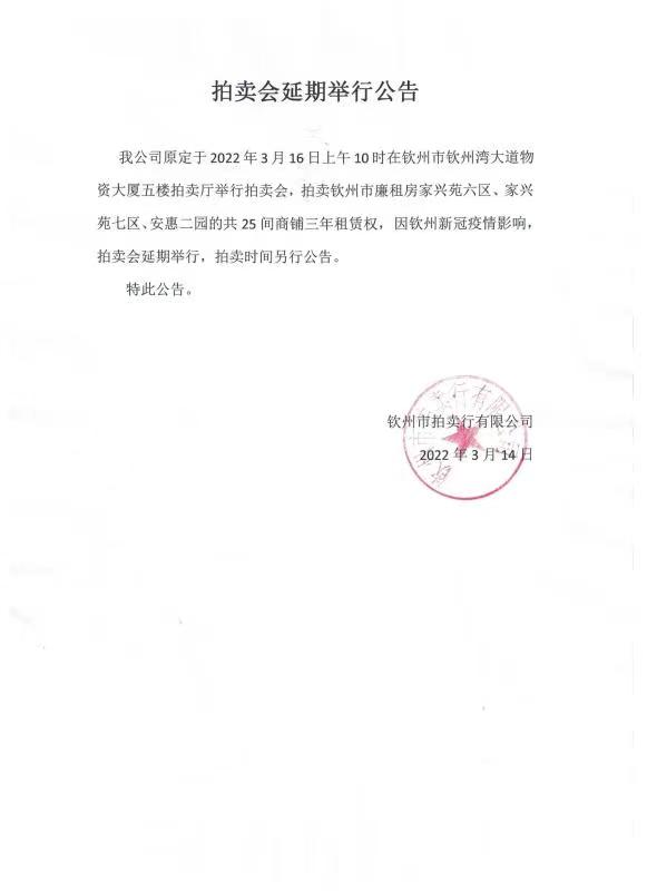 商鋪租賃權(quán)拍賣公告(家興苑六、七區(qū)和安惠二園)