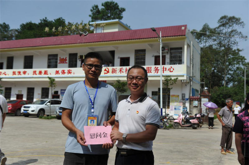 在新禾村公共服務中心二樓會議室,幫扶后盾單位向村干部、駐村工作隊員送上節日慰問品、慰問金以及誠摯的問候,對他們一直以來為新禾村的付出和貢獻表示感謝,希望他們繼續擼起袖子加油干,暢通脫貧攻堅“最后一公里”,答...