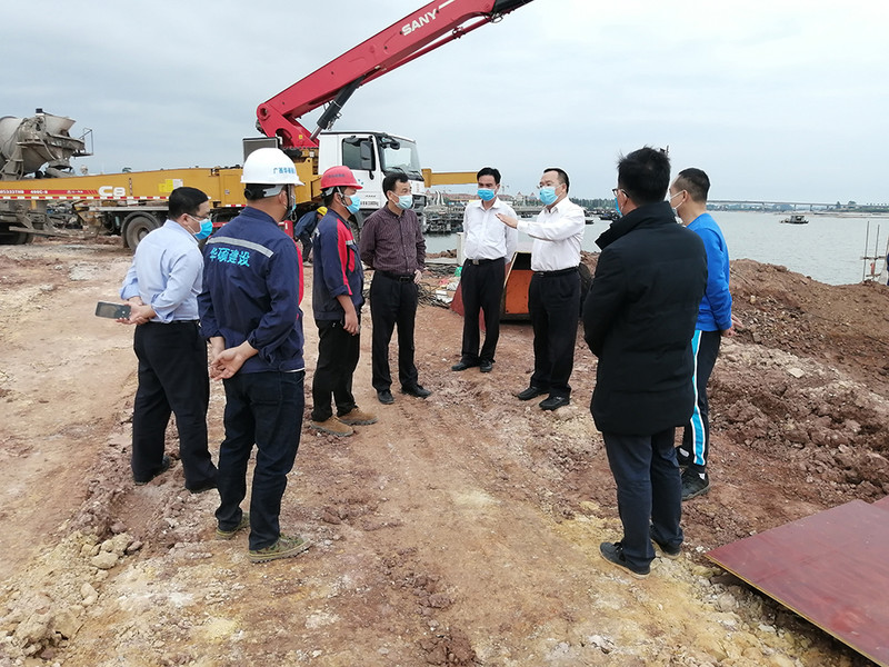 2020年3月25日市海洋局局長李遠欽到我集團公司負責建設的欽州市茅尾海國家級海洋公園監測監控管理基地項目碼頭工程現場調研項目推進情況。我集團公司副總經理余業勝以及集團公司建設管理部相關現場人員到現場迎接調研。市海洋局局長李遠欽查看現場建設情況后,在現場辦公室召開會議。會議對碼頭工程主體結構及疏浚吹填工作計劃進行了討論。