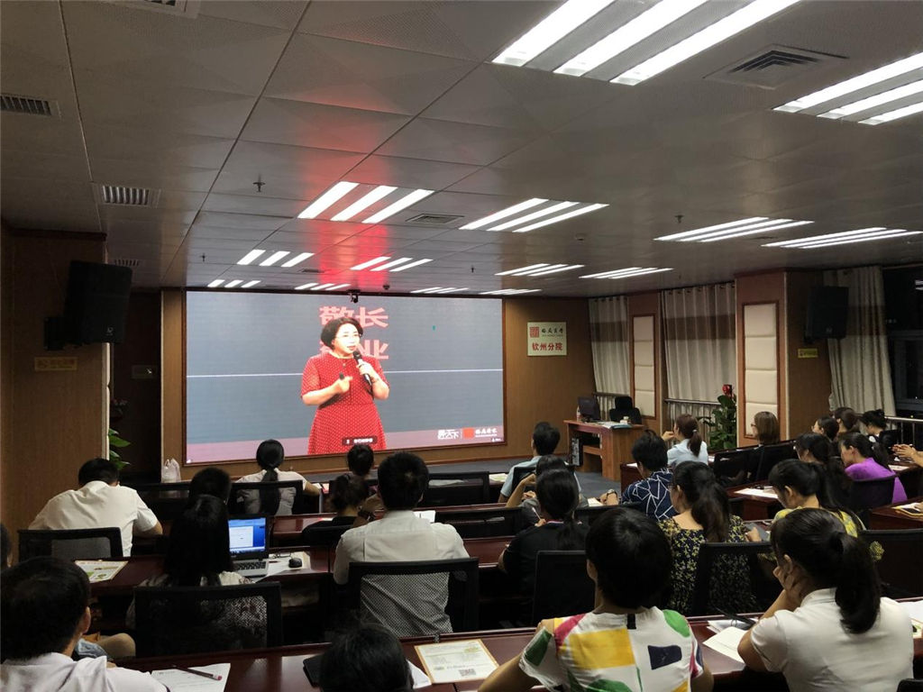 8 月 15 日 19:00 在格局商學院欽州分院召開欽州市婦女 聯(lián)合會、 欽州市教育局聯(lián)合主辦, 格局商學院欽州分院承辦 的家庭教育公益講座 《讓愛更有智慧》 我集團公司婦委會組 織女職工參加了講座。