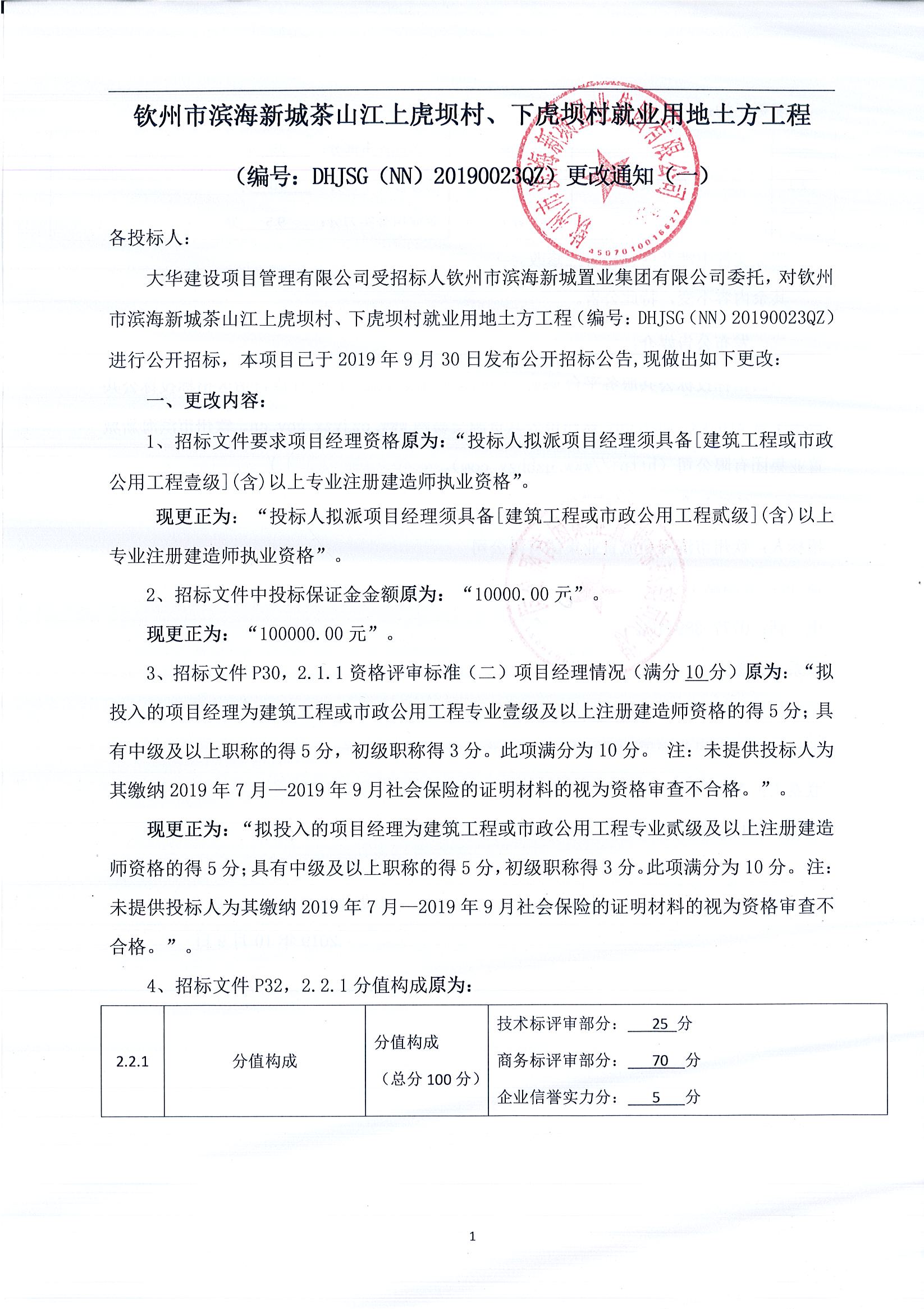 欽州市濱海新城茶山江上虎壩村、下虎壩村就業用地土方工程(編號:DHJSG(NN)20190023QZ)更改通知(一)