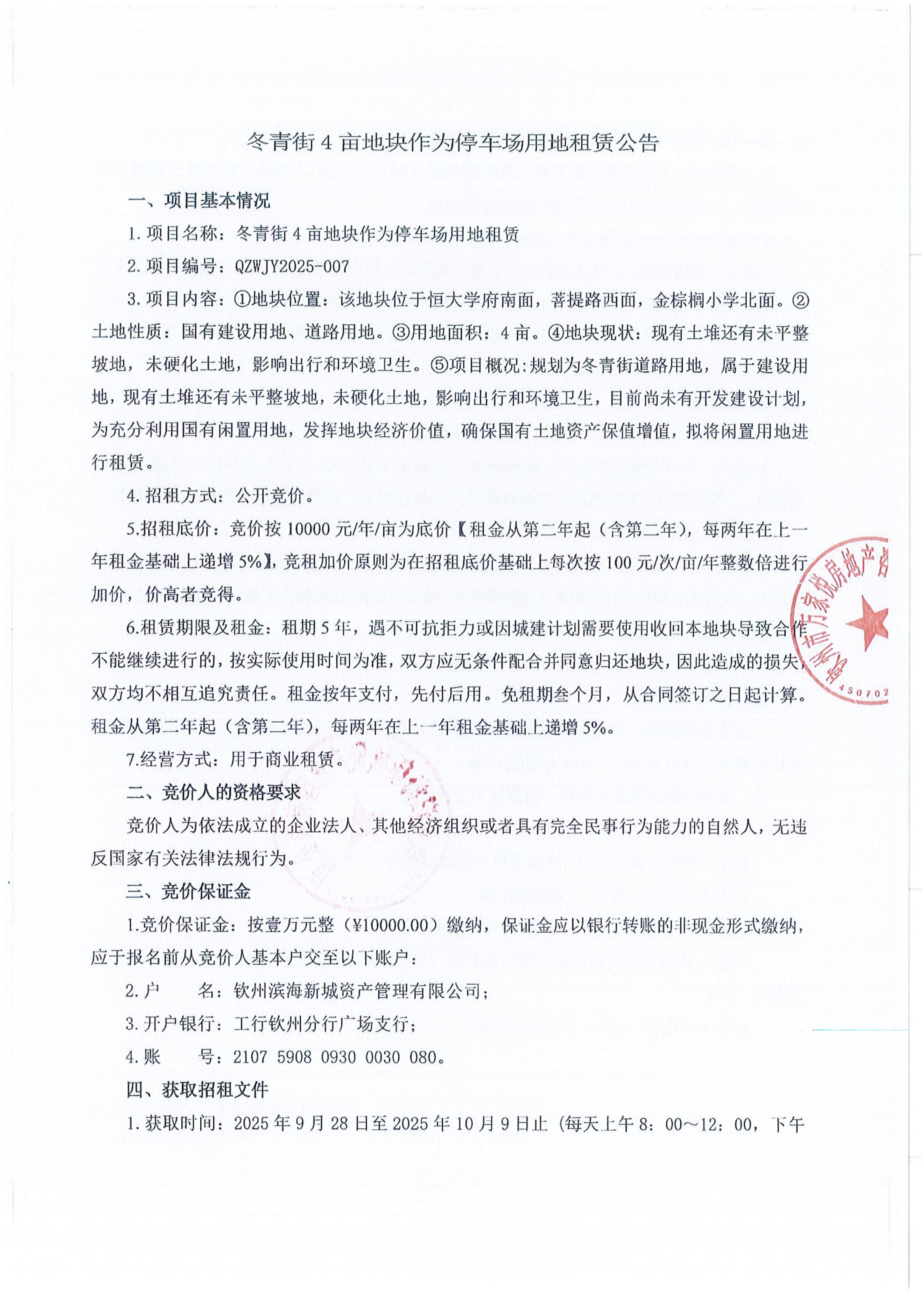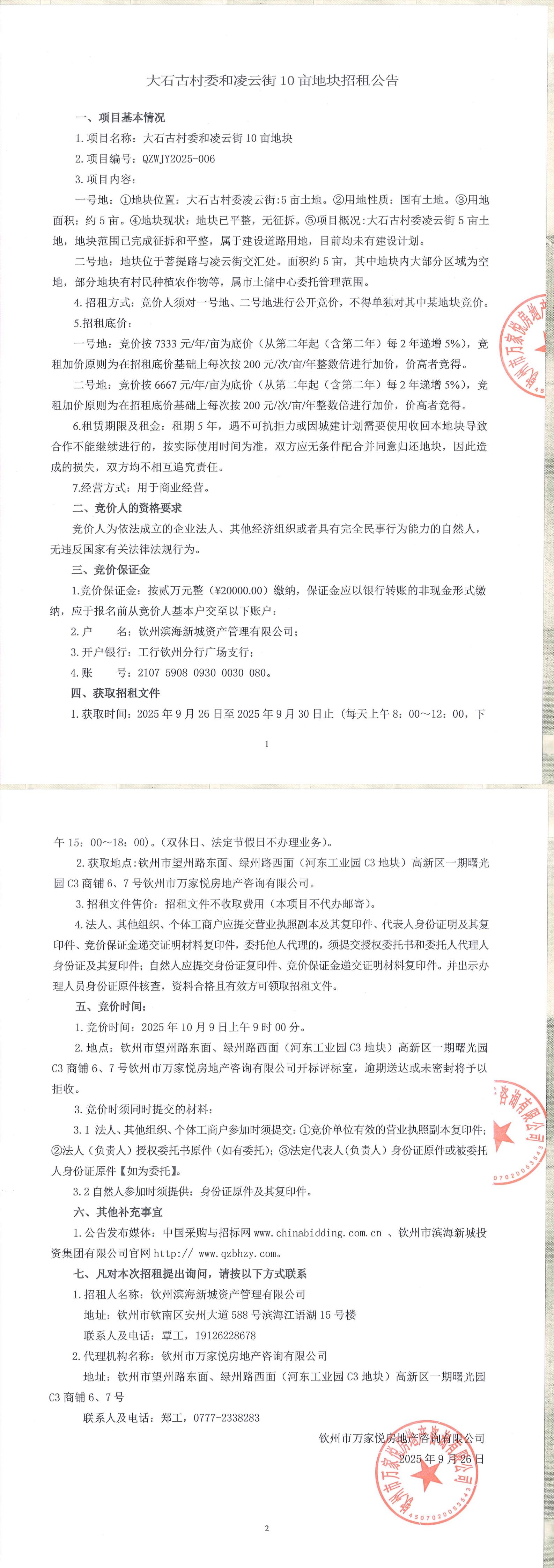 欽州市欽南區安州大道西側(共美學校)儲備用地公開招租項目