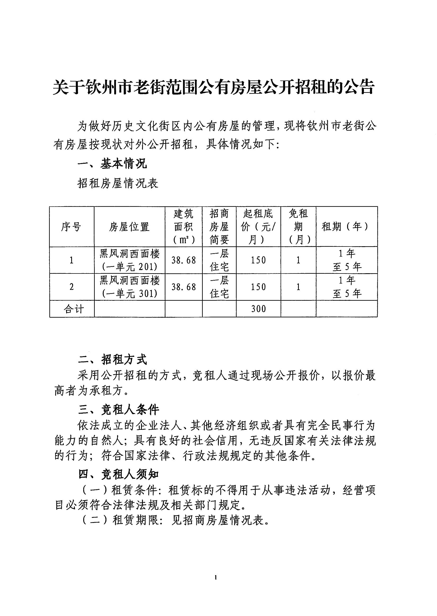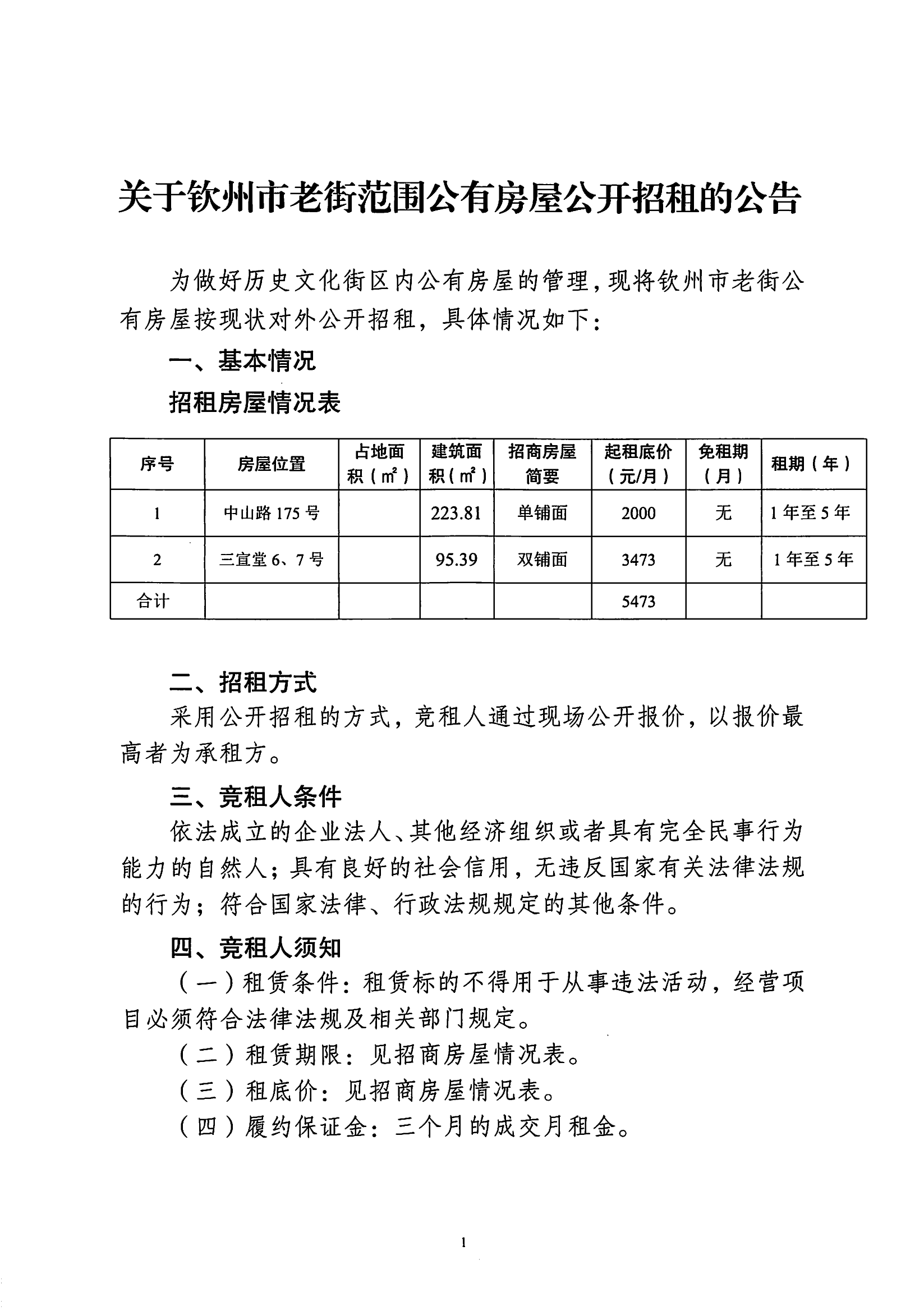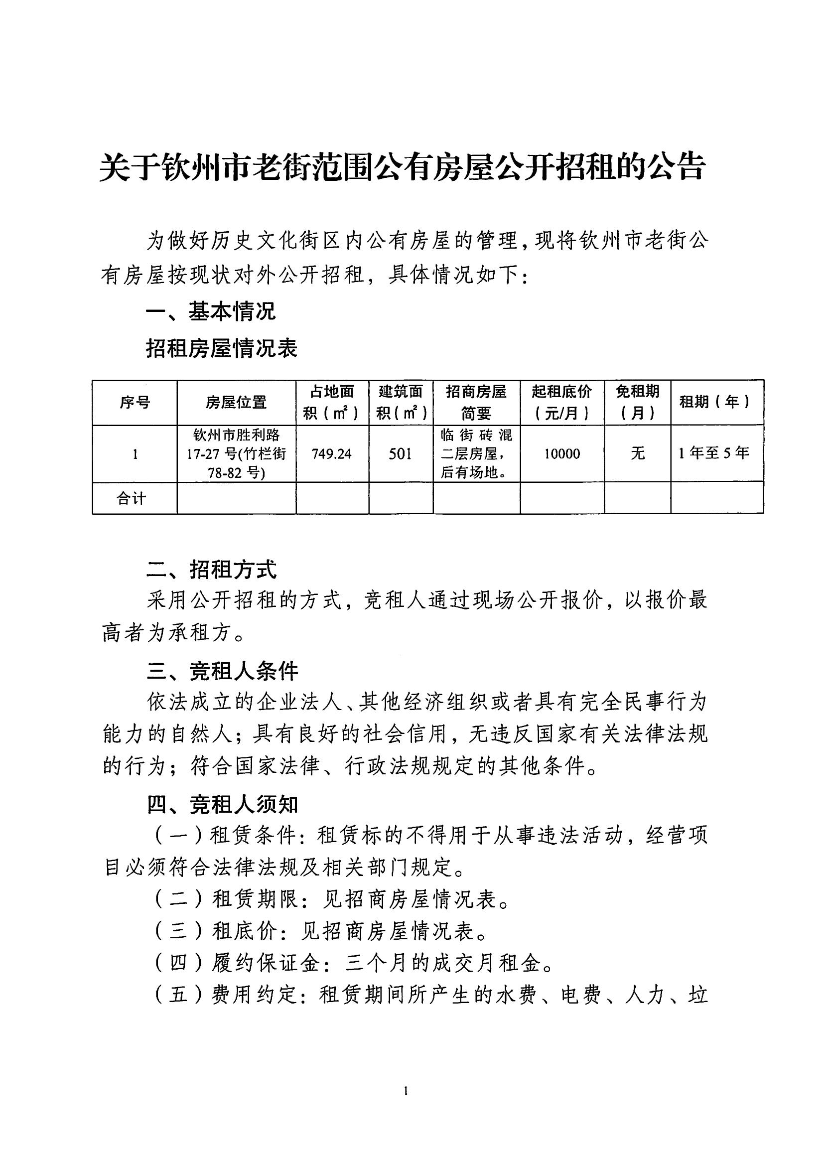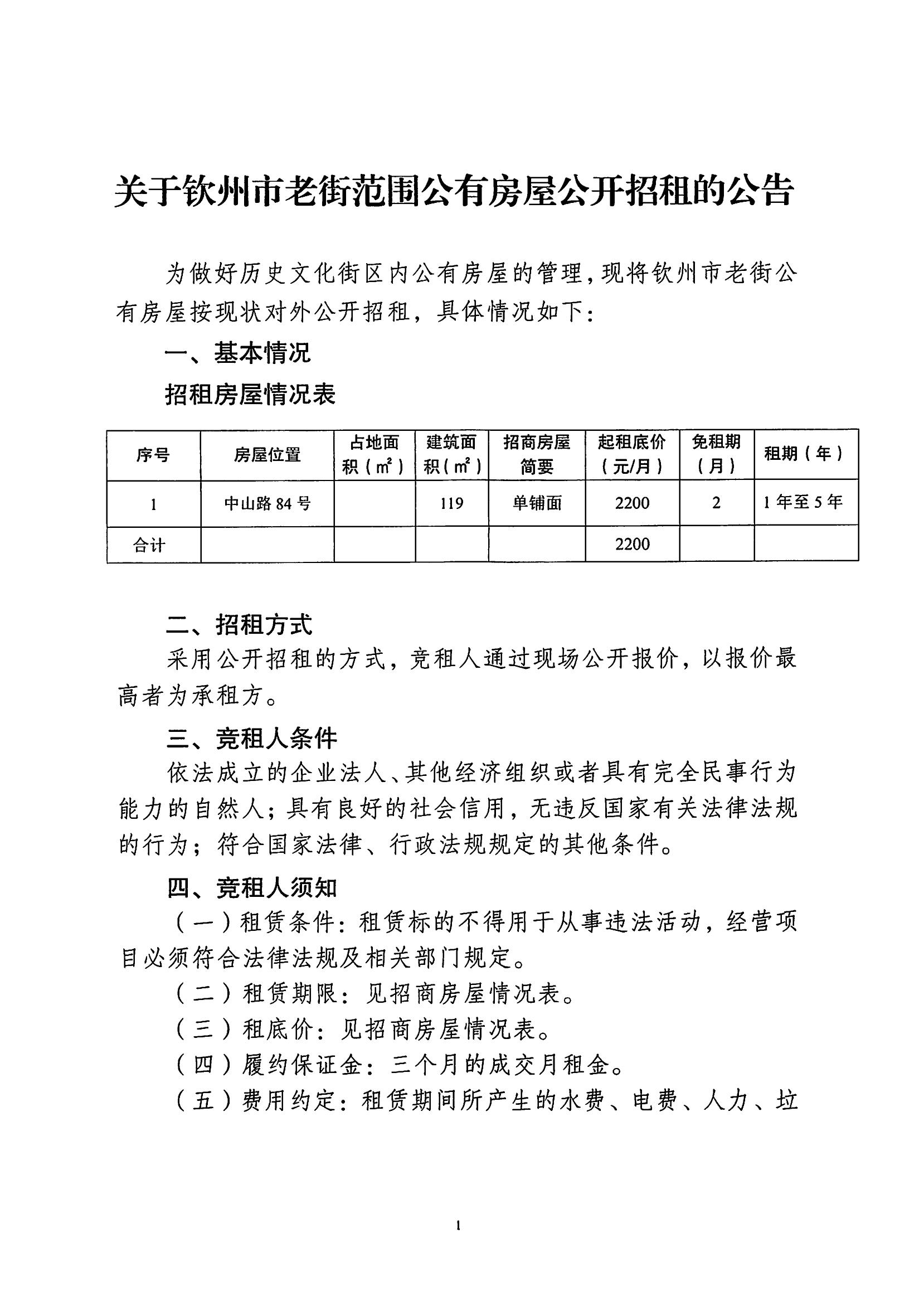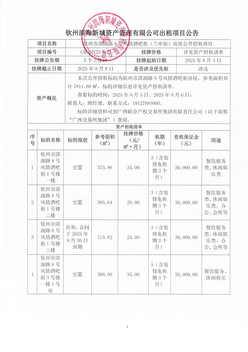 欽州濱海新城資產管理有限公司旺鋪及地塊對外招租公告