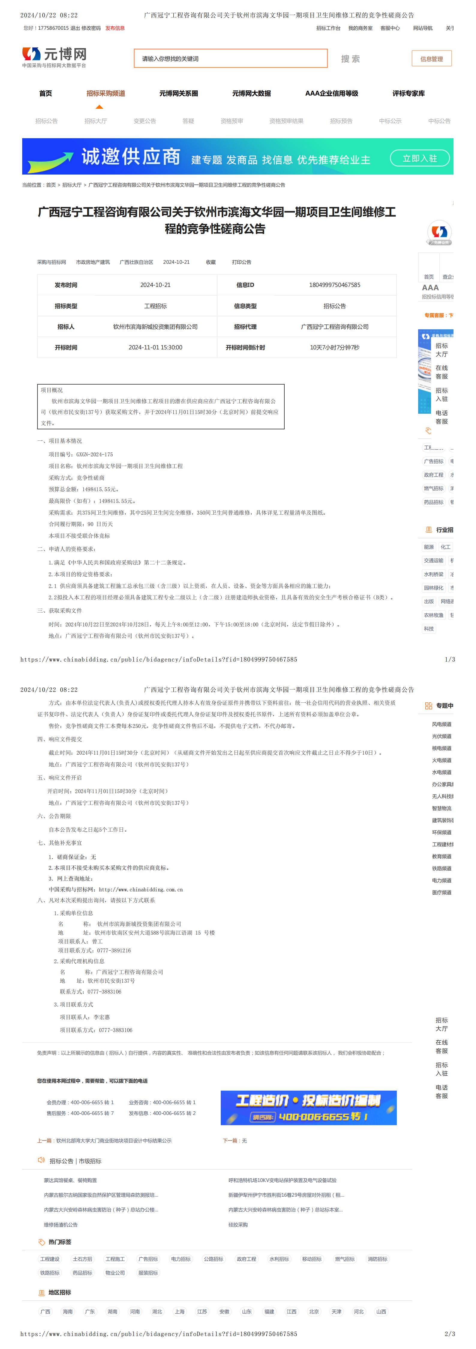 廣西冠寧工程咨詢有限公司關于欽州市濱海文華園一期項目衛生間維修工程的競爭性磋商公告