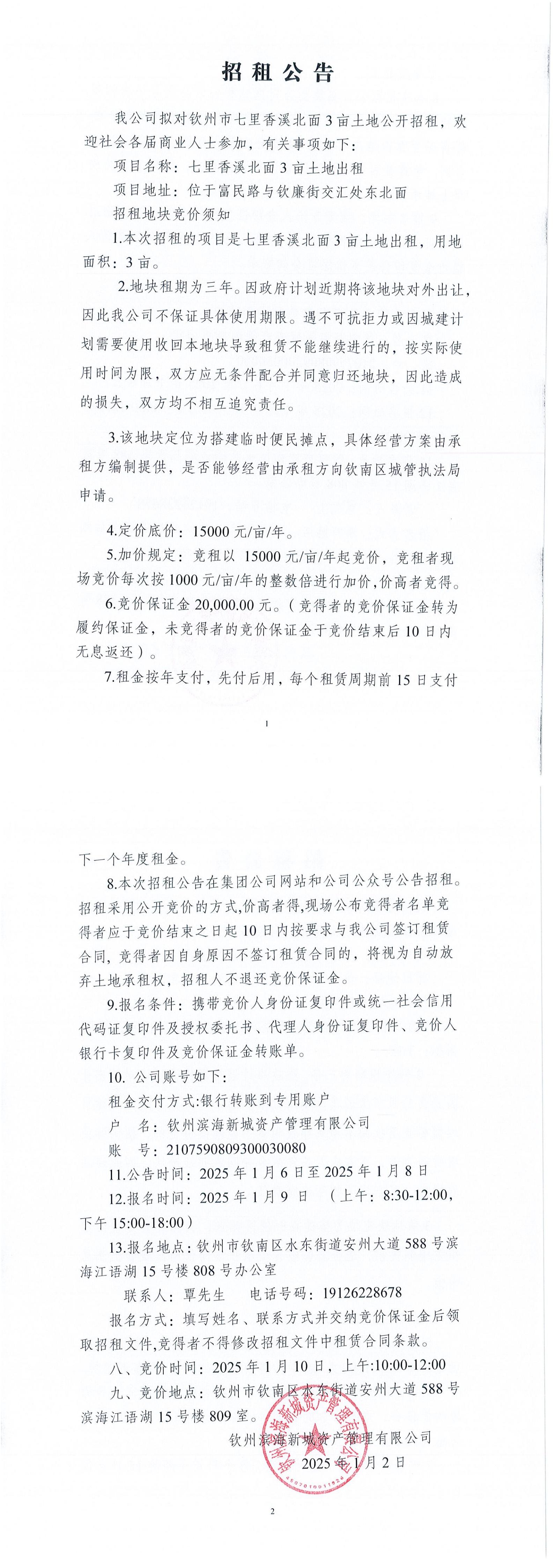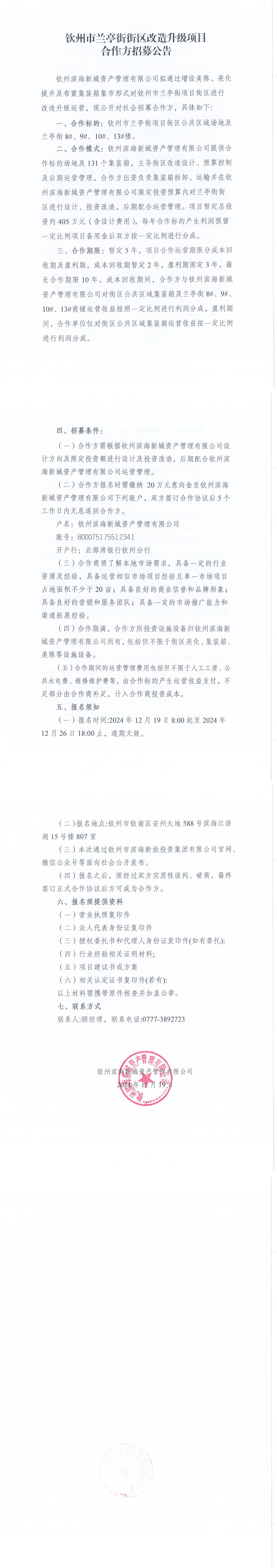 欽州市蘭亭街街區改造升級項目合作方招募公告