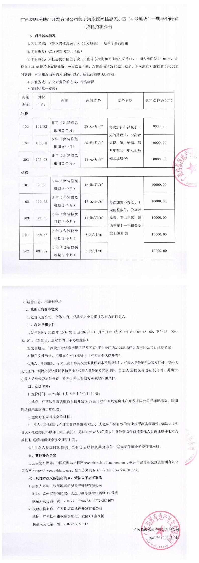 河東區(qū)興桂惠民小區(qū)(4號地塊)一期單個商鋪招租招租公告