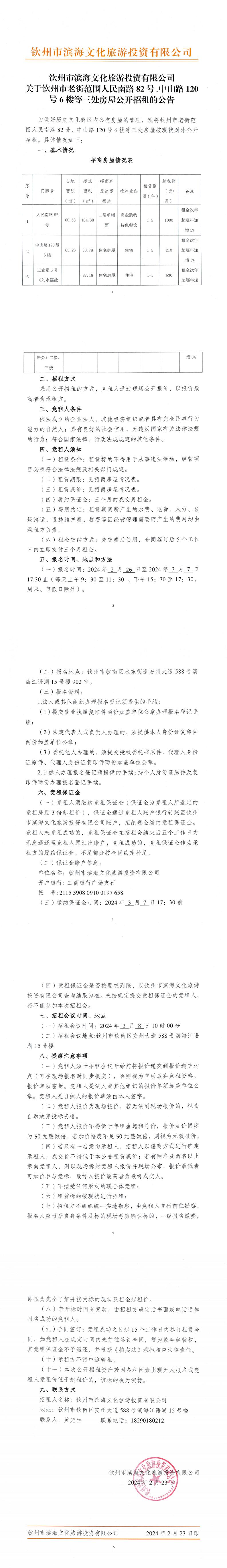關(guān)于欽州市老街范圍人民南路82號、中山路120號6樓等三處房屋公開招租的公告