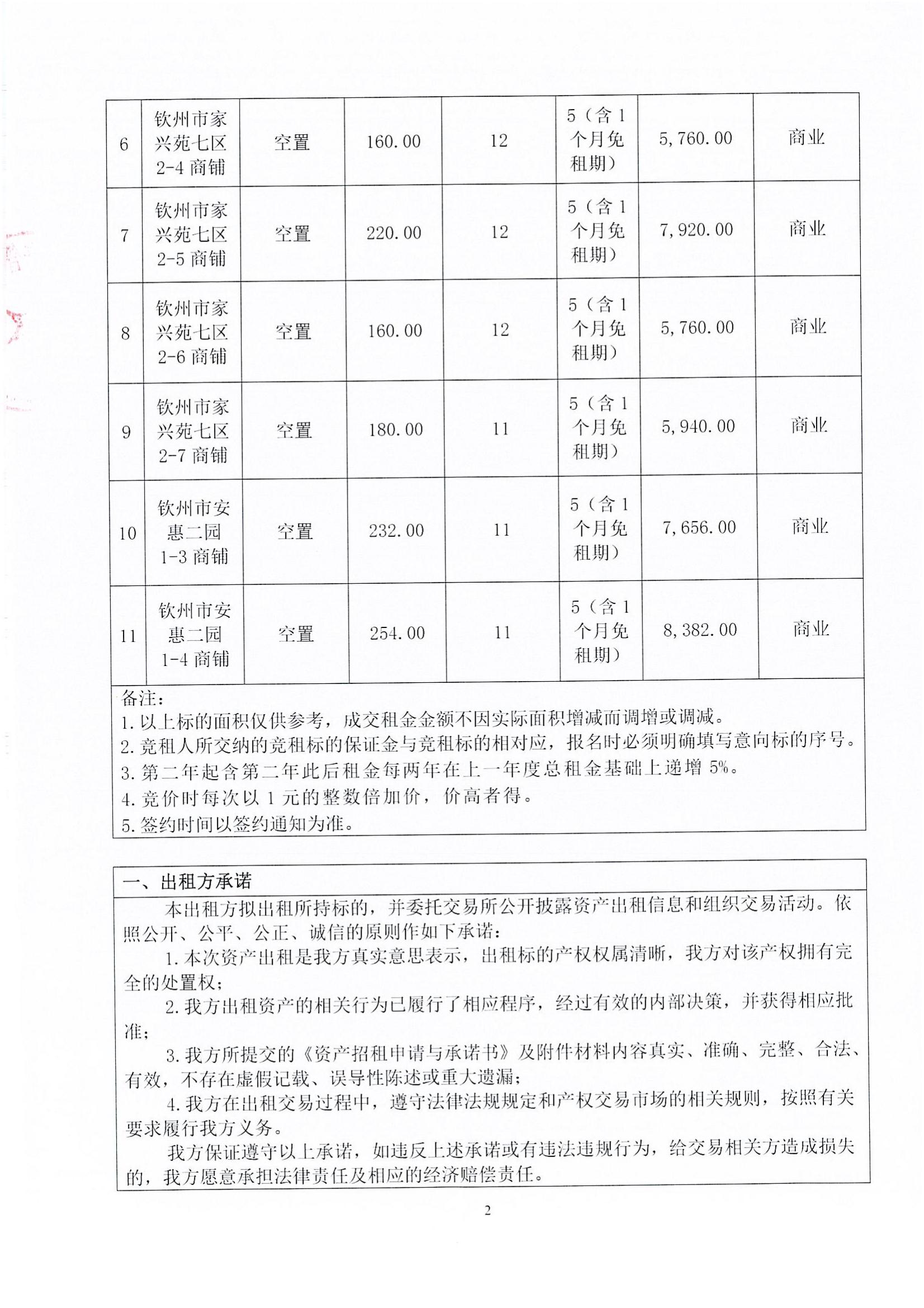 欽州市家興苑六區、家興苑七區、安惠二園共11間商鋪公開招租項目